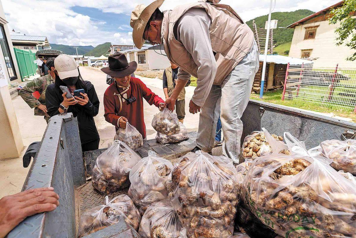 With the spread of mobile devices such as smartphones, more and more Tibetan villagers are using short videos and livestreaming to share online their matsutake-picking process, becoming new "matsutake hunters."