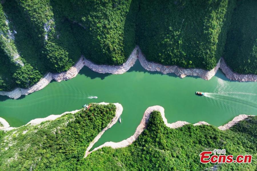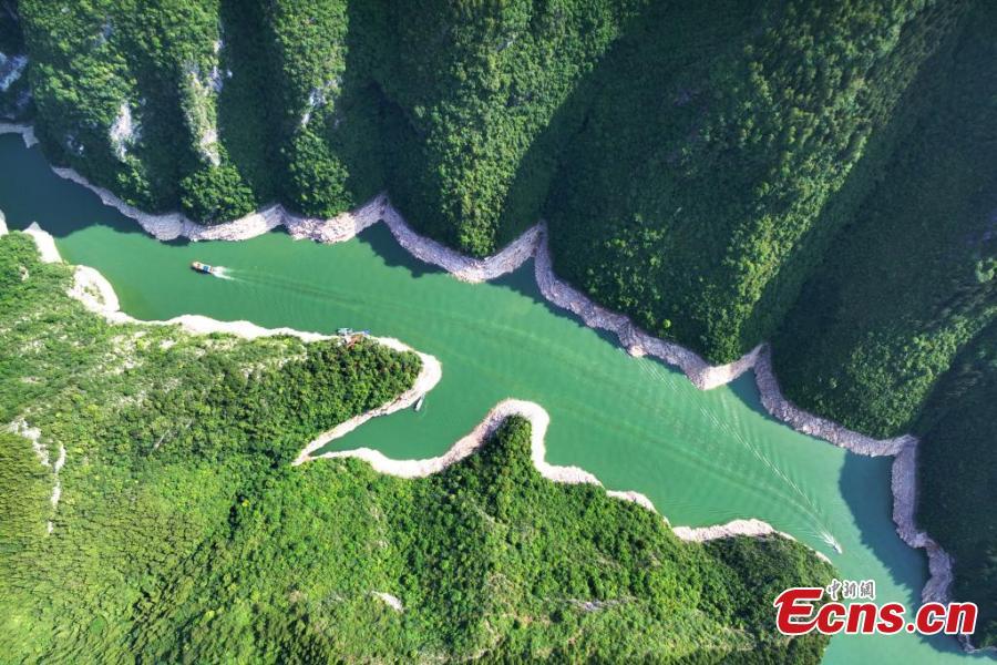 Shennong Stream resembles a green silk ribbon as it weaves through the mountains in Badong County, central China’s Hubei Province, June 17, 2025. (Photo: China News Service/ Jiao Guobin)