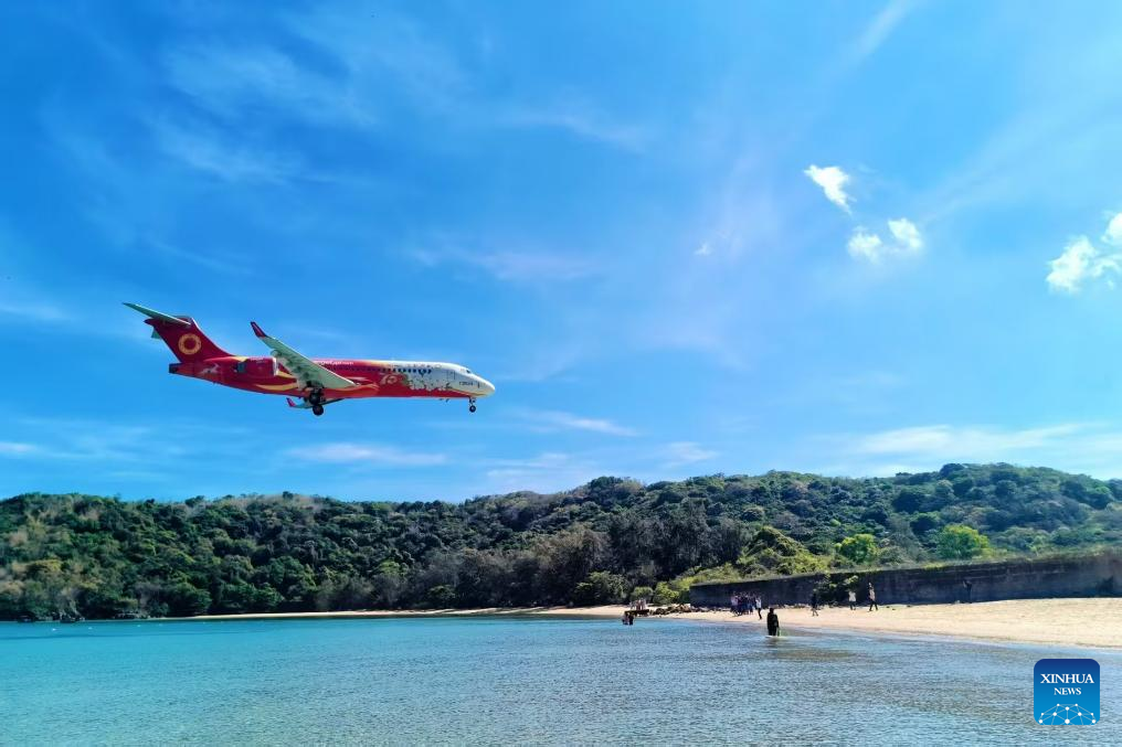 A C909 jetliner lands at Con Dao Airport, Vietnam, April 19, 2025. Two C909 aircraft, wet leased by Chengdu Airlines to Vietnam's Vietjet Air, began service on April 19, 2025. Saturday marks the ninth anniversary of the commercial operation of China's domestically developed regional jetliner C909. So far, 166 C909 aircraft have been delivered, which have handled over 24 million passenger trips. (Xinhua)
