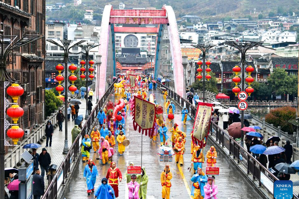 A drone photo taken on April 9, 2026 shows a view of drift ice floating on the Harbin section of Songhua River in northeast China's Heilongjiang Province. Large amount of ice drifted on the surface of Heilongjiang River and Songhua River recently due to the rise of temperature