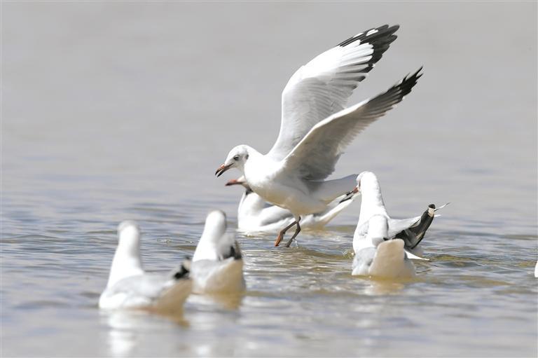 Gulls Soaring Over the Lake.