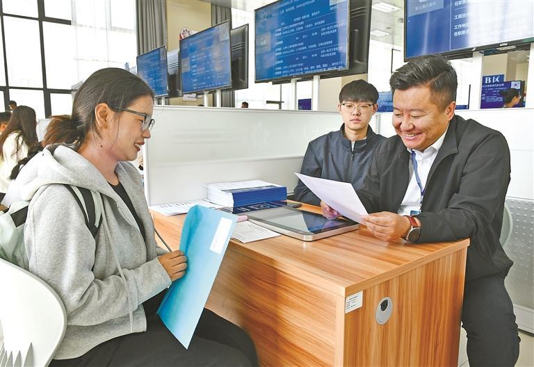 The picture shows the interview of job seekers at the 2025 National Digital Literacy and Skills Promotion Job Fair held by the Employment Service Center of the Xizang Autonomous Region. (Xizang Daily/Danzeng Lanze)