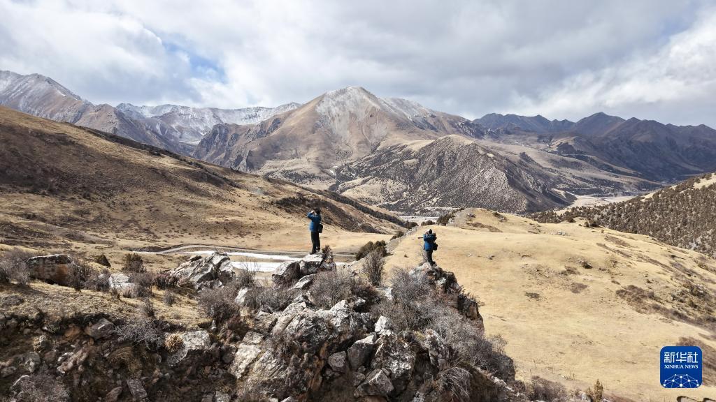 On January 29, Ciding (right) and Gengga were patrolling in Angsai Township, Zaduo County, Yushu Tibetan Autonomous Prefecture, Qinghai Province (drone photo).