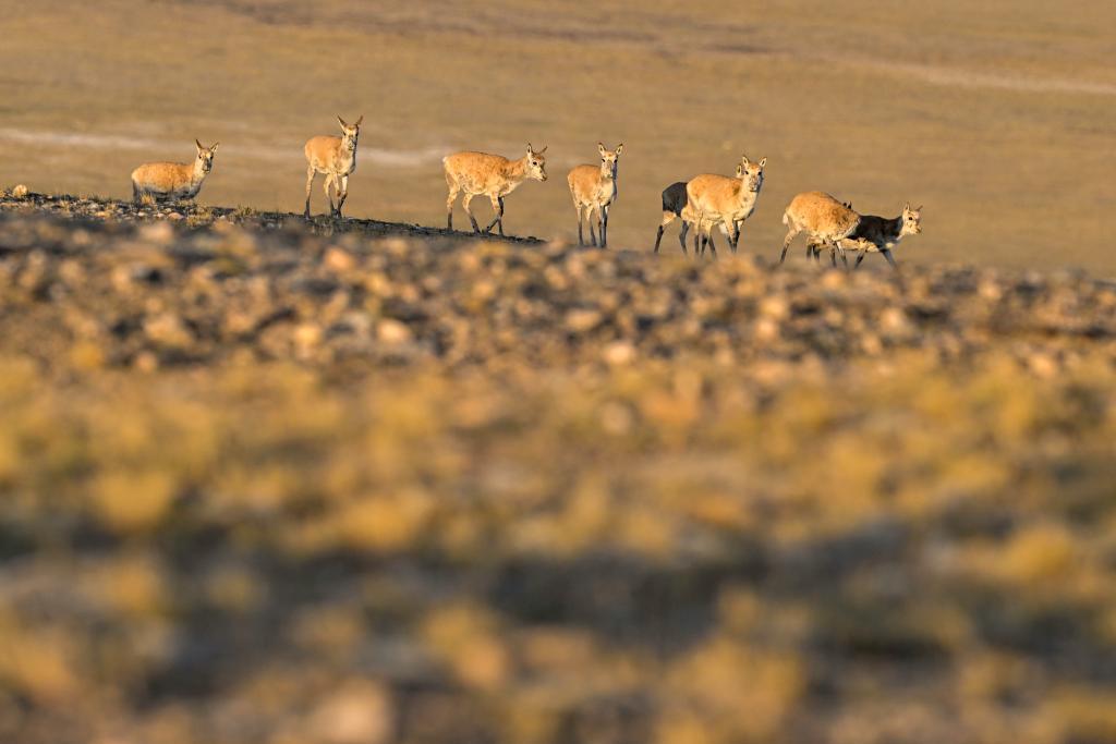 The number of Tibetan antelopes in Xizang has now increased to more than 300,000, and their protection status has been downgraded from "endangered" to "near threatened," according to data from the region's ecology and environment department.