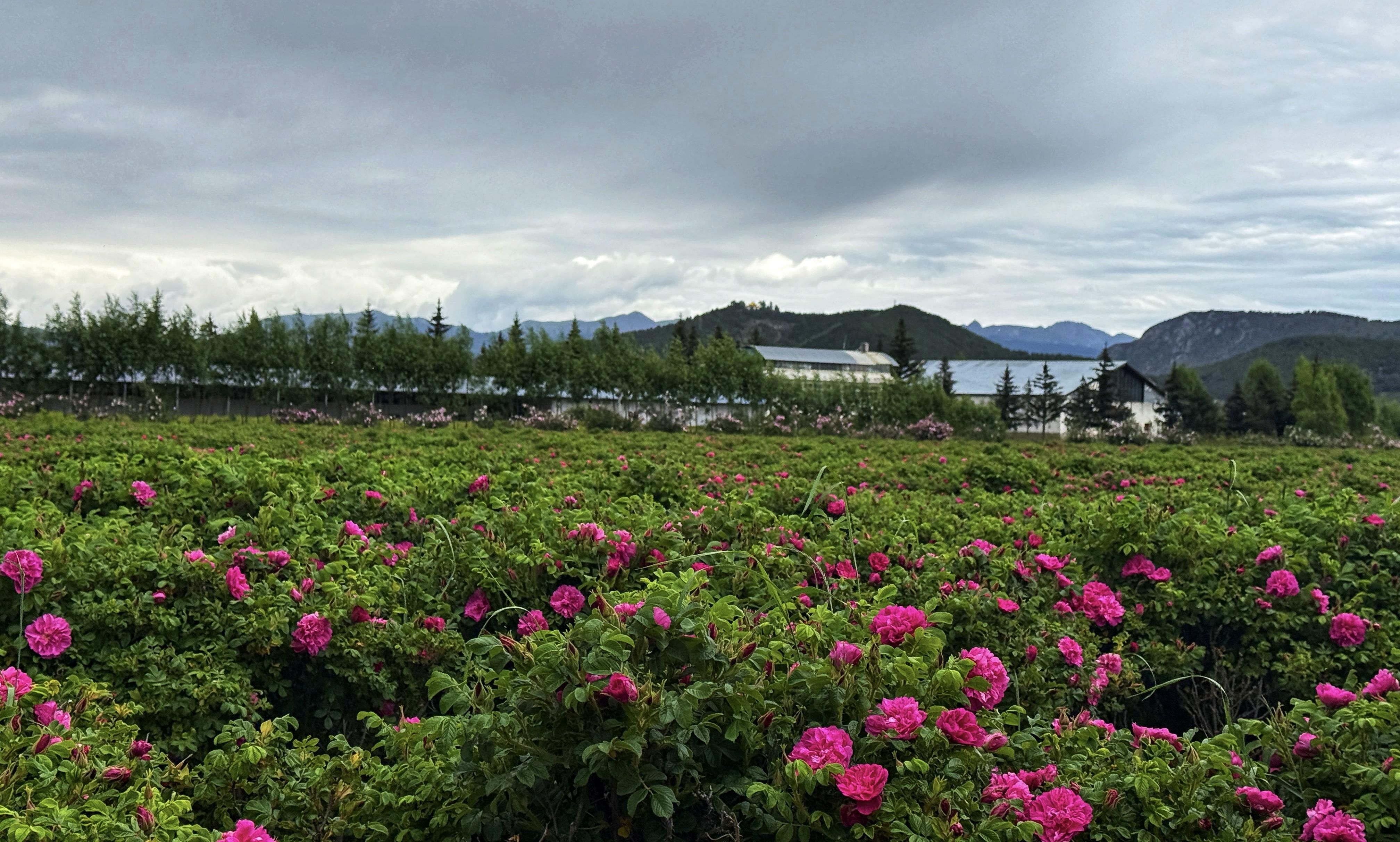 A romantic dialogue between roses and snow capped mountains is unfolding in Shangri La