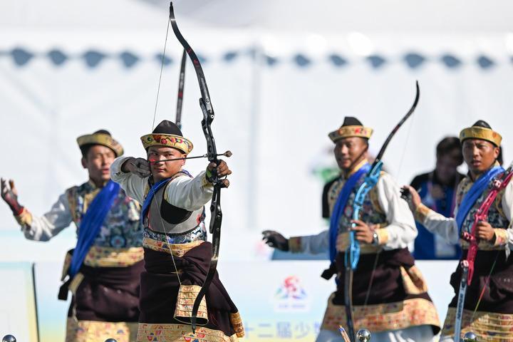 The contestants were in the 10th "sound of arrows" Competition in Nyingri , Xizang Autonomous Region.